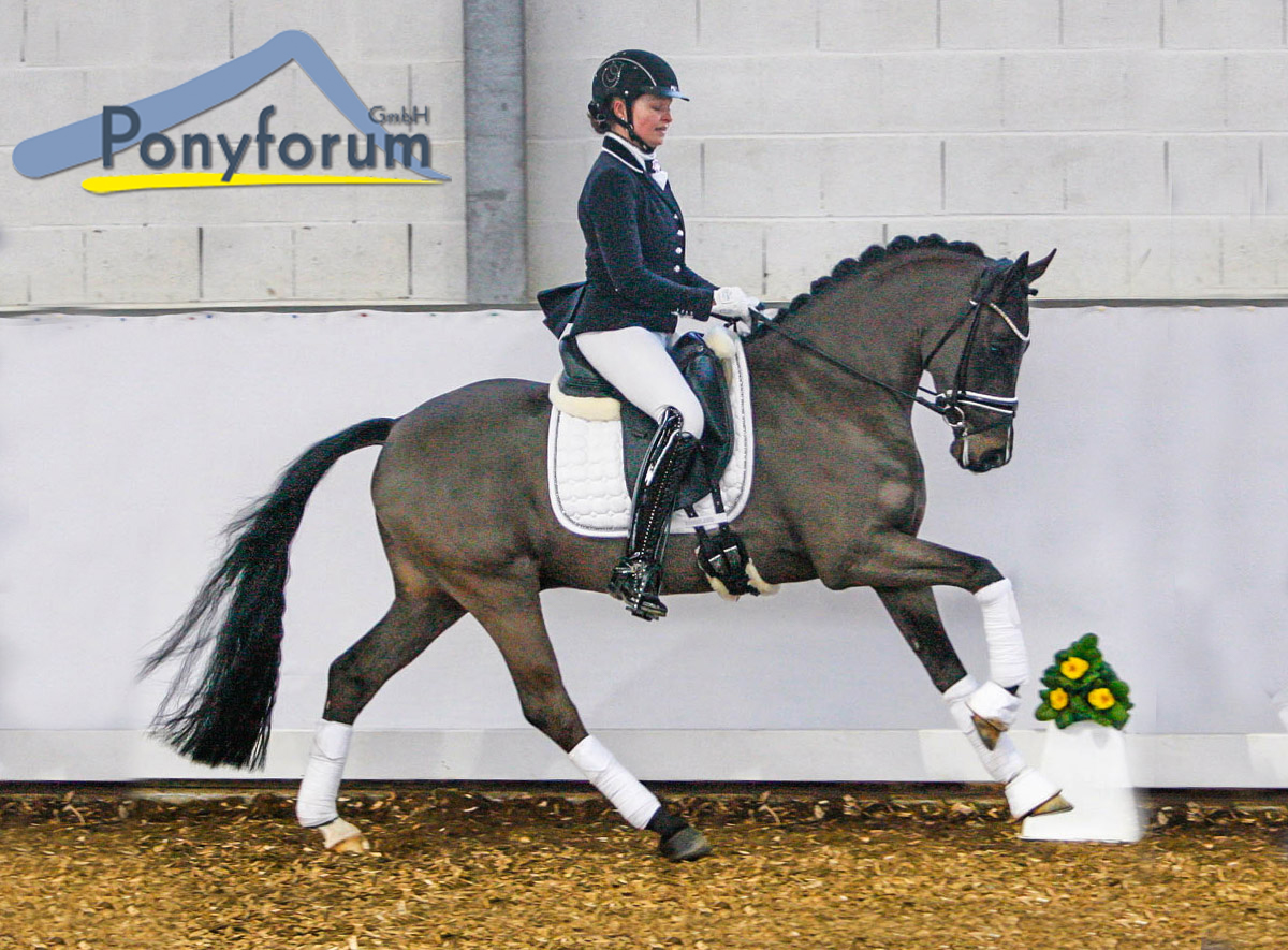 Mit 25.000,00€ der 1,53m große 6j. bewegungsgeniale Rappe „Tadellos“ (Züchter: Sascha Hahn, Bramsche) v. Totilas – Kaiser Franz teuerstes Pony der Sparte XXL.