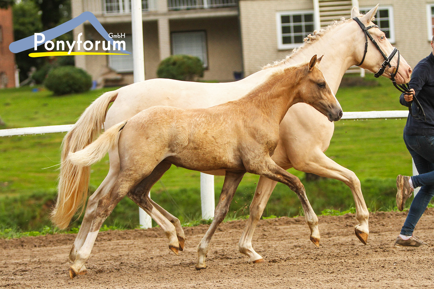 Ebenfalls aus Holstein stammt das zweitteuerste Fohlen, der Falbhengst „Grey´s Gentleman“ v. Golden Grey NRW – Danny Gold aus der Zucht von Katja Dageförde aus Elsfleth. Der charmante Bewegungskünstler konnte sich auf dem Deutschen Reitponyfohlenchampionat bestens in Szene setzen und wird nun bei passionierten Ponyfreunden aus dem Rheinland als Hengstanwärter aufgezogen – zusammen mit einem weiteren Auktionsfohlen!