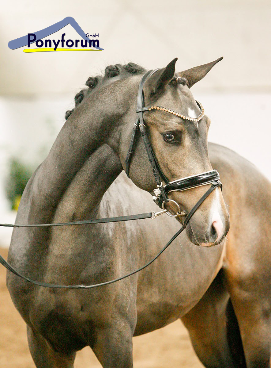 Die westfälische Reitponystute „Danny June“, abstammend von Dimension AT NRW – FS Champion de Luxe aus der Zucht von Anne Grosse Beckmann aus Münster, wurde erst nach langem und spannenden Bieterduell für 18.000,00€ an eine Warmblutzüchterin aus Norddeutschland zugeschlagen. Die bildschöne Stute wurde in Münster schon mit der Staatsprämie ausgezeichnet und entstammt einem wertvollen westfälischen Stutenstamm.