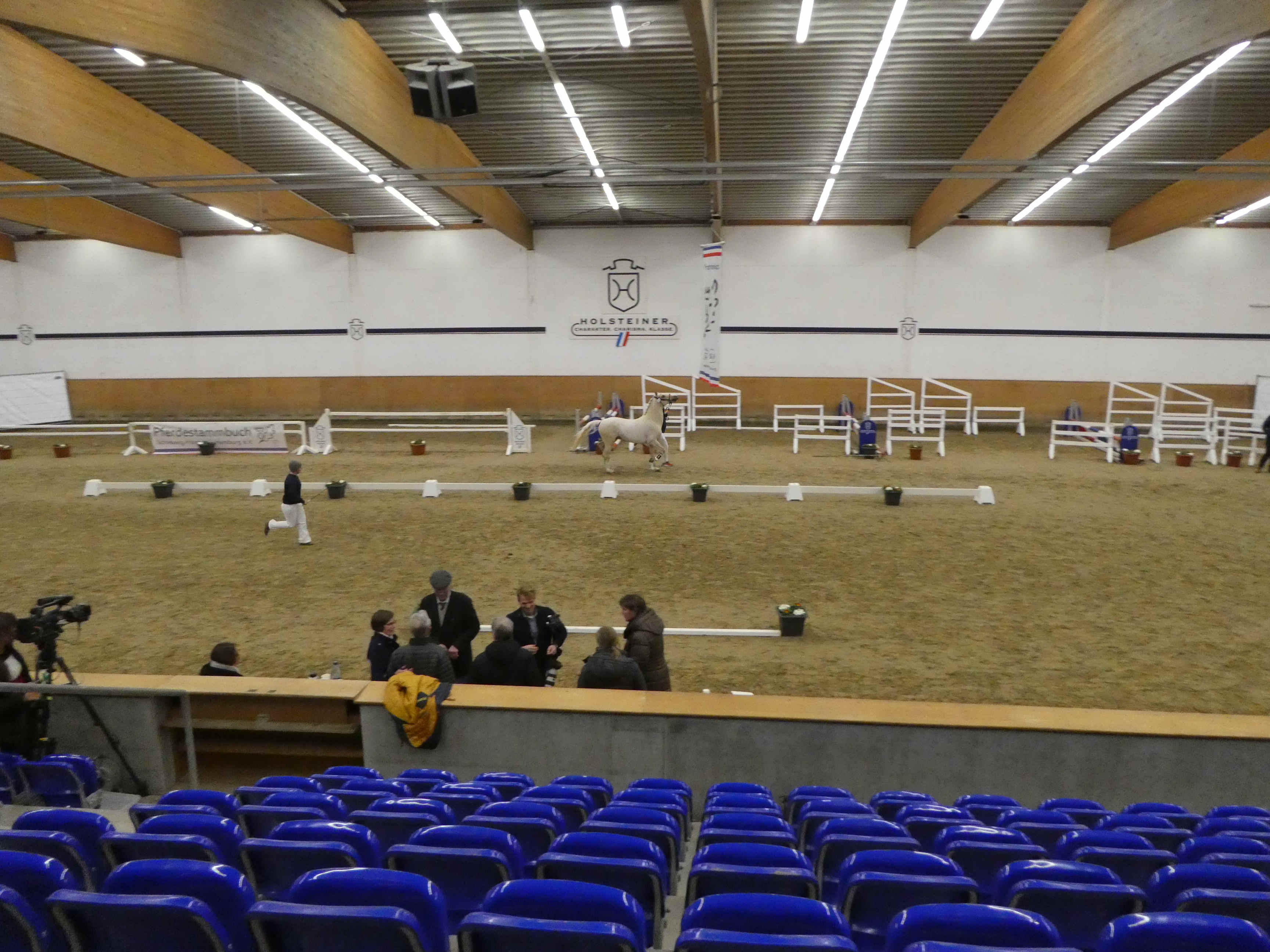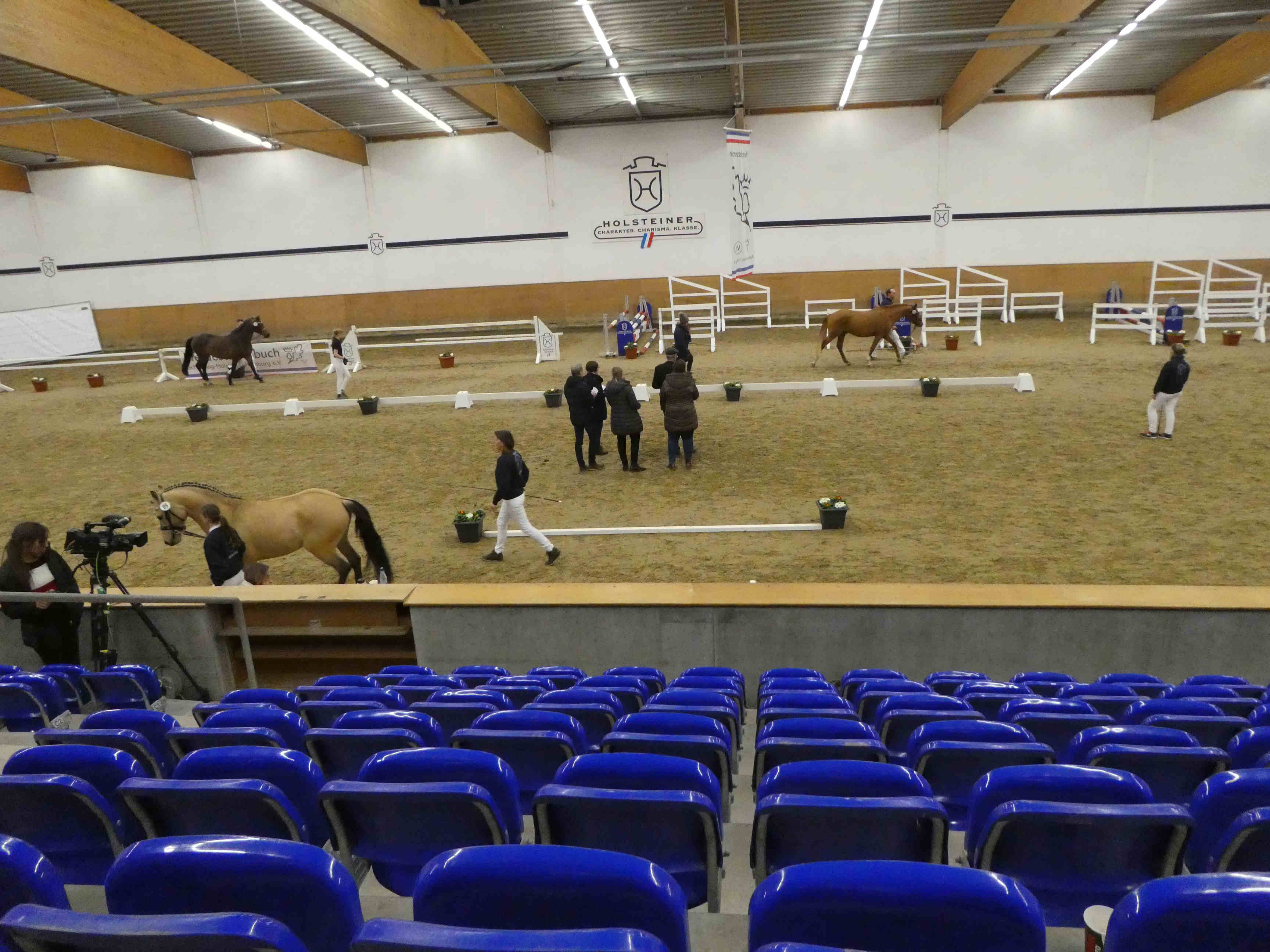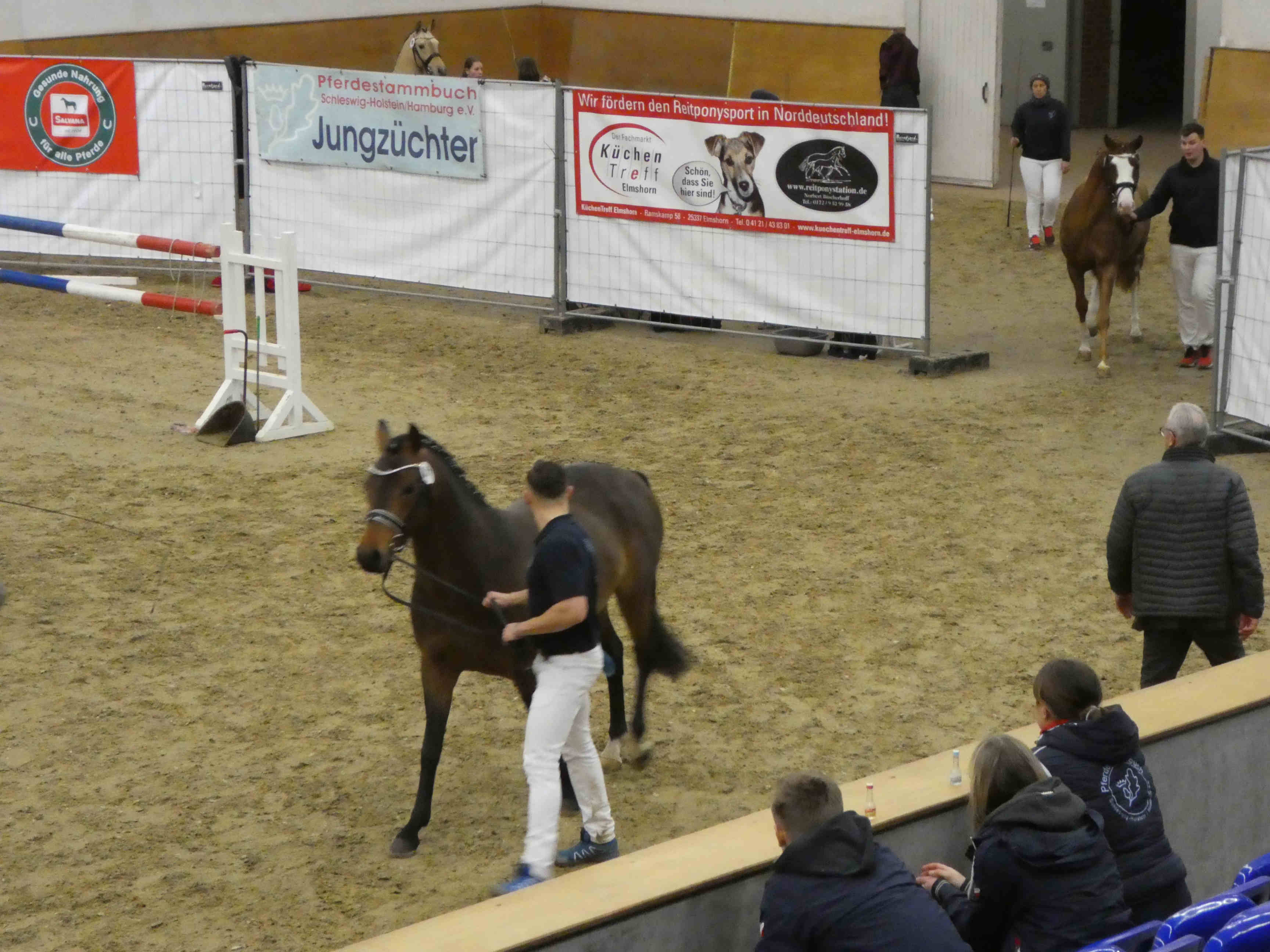 Die letzten Reitponyhengste dieses ersten Körungstages sind gerade fertig mit dem Freispringen und zurück in ihre Boxen.