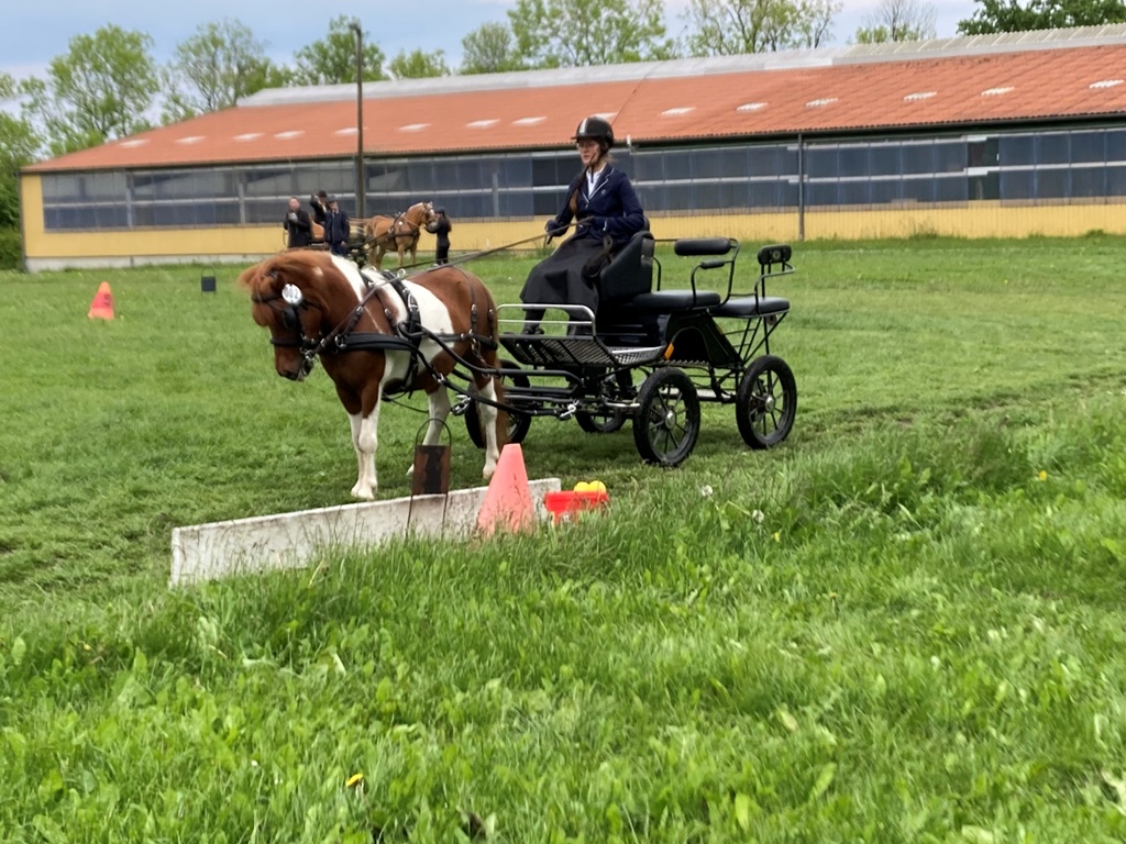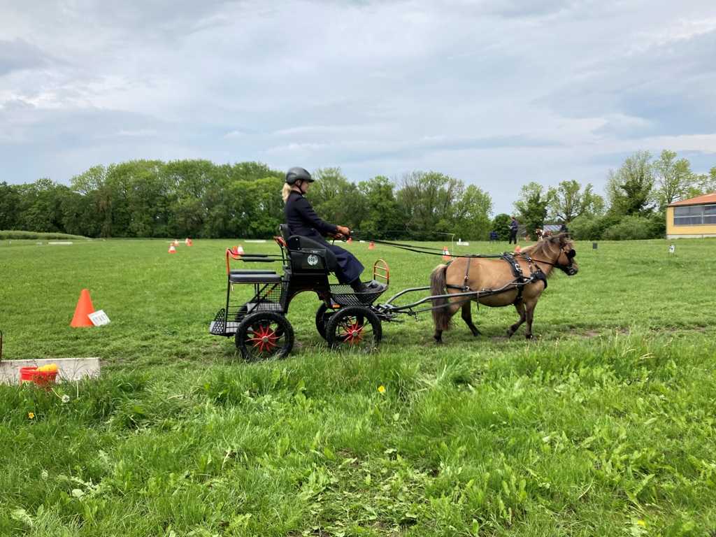 Während ein Hengst zurückgezogen wurde, verließen alle anderen Prüflinge die vom Lehr- und Versuchszentrum zur Verfügung gestellte Anlage mit guten bis sehr guten Ergebnissen. Auch der zwischenzeitlich einsetzende Regen konnten die Leistungen nicht negativ beeinflussen. Schon beim Anspannen konnte beobachtet werden, wie gelassen die jungen Ponys auf dem fremden Gelände waren, sicherlich auch eine Folge guter Ausbildung. Unterschiede auf dem Viereck waren erkennbar, aber die gute Leistungsbereitschaft war bei allen elf Ponys, die den Test beendeten, deutlich erkennbar.