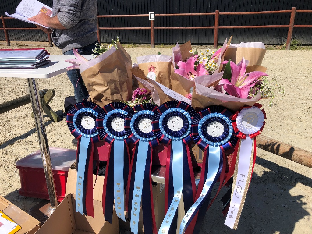 Auch auf diesem Betrieb war alles bestens vorbereitet: Katalog, Startreihenfolge, der Platz zum Messen und zur Pflastermusterung und ein schöner Reitplatz für Dreieck und Freilaufen. Dazu die Ehrenpreise, Schleifen und Blumensträuße. Das Wetter allerbestens, ein strahlend blauer Himmel, dazu ordentlich viel Wind, Nordseeküste eben.
