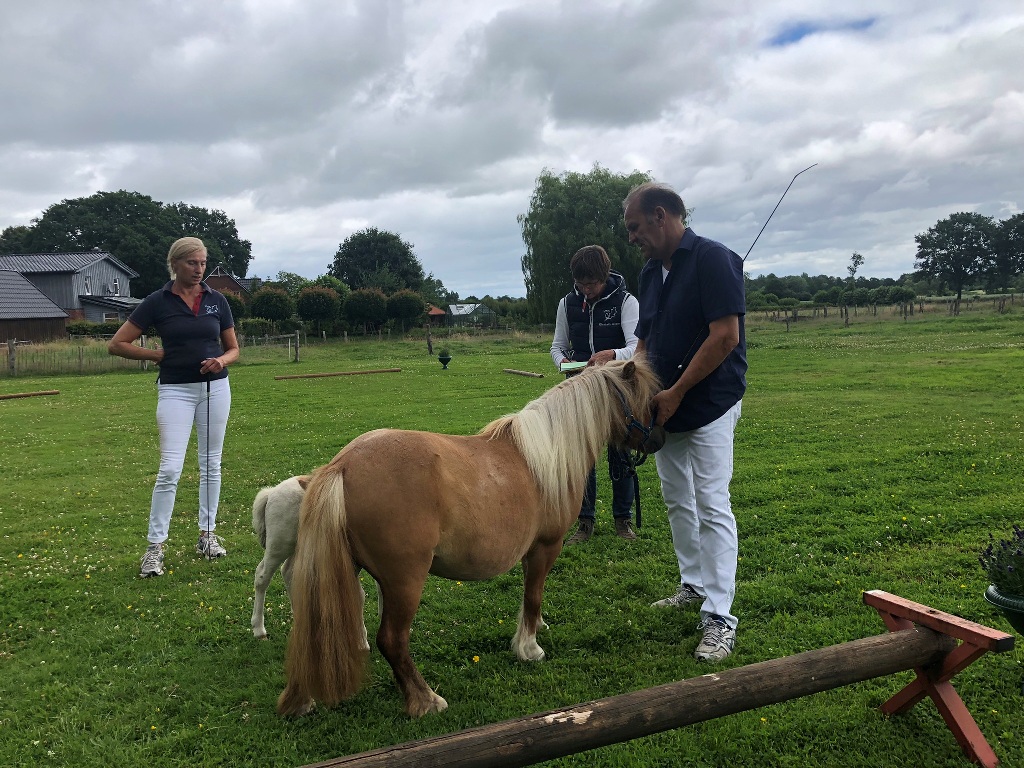 Weiter ging`s zum nächsten Termin nach Struvenhütten zum Hof von Thies Roll. Wie bereits im letzten Jahr hatte sich eine ganze Zahl am Zuschauern eingefunden, die jede einzelne Prämierung der Mini-Shettys feierten. Auch ein Welsh und ein Reitponyfohlen wurden gezeigt. Hervorheben kann man einmal bei diesem Platz, wie hilfreich eine perfekte Peitschenführung sein kann. Nach einer Stärkung mit hausgemachtem Kuchen und Kaffee - ein herzliches Dankeschön dafür - fuhren wir zum letzten Platz des Tages.