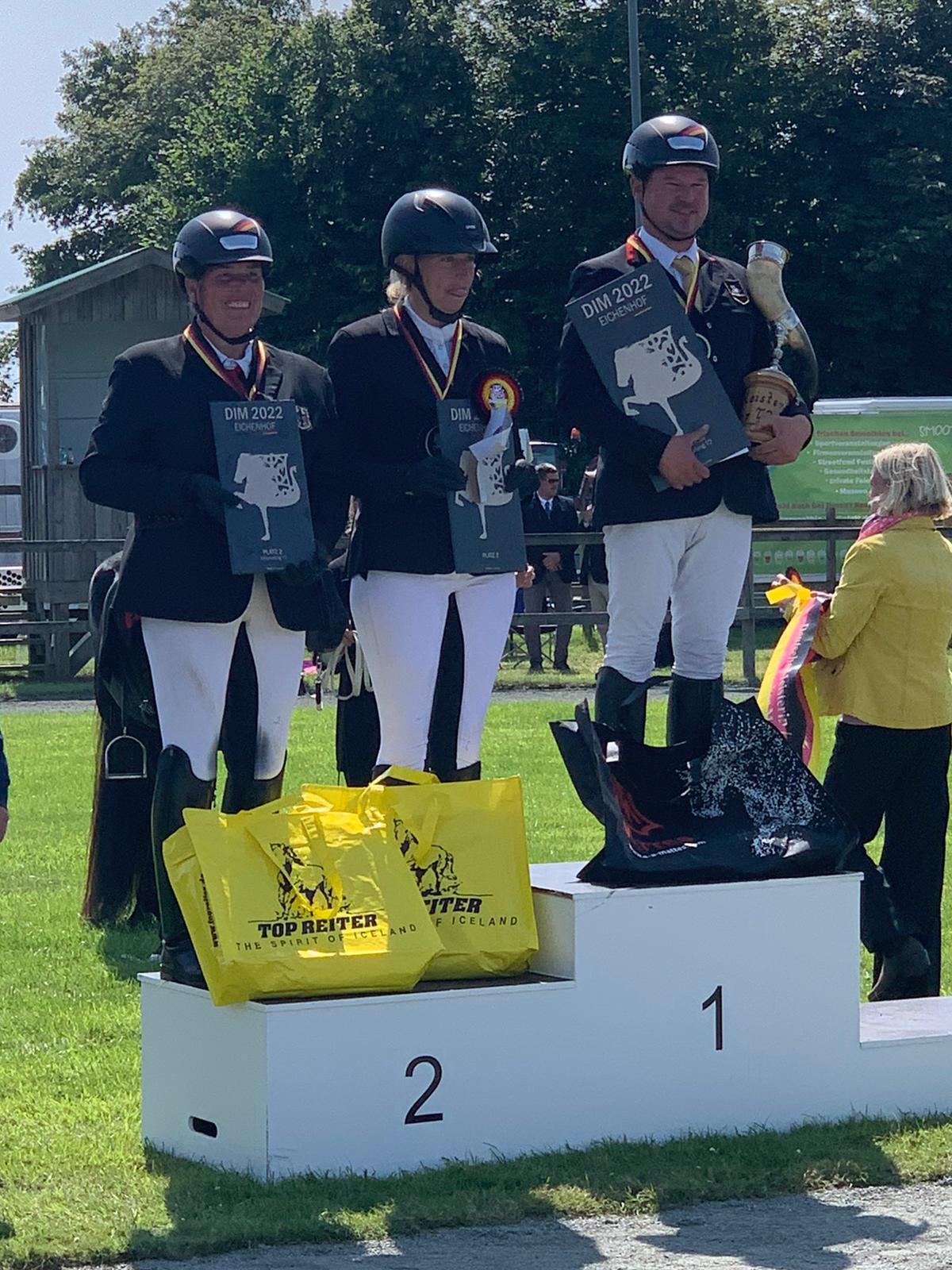 Einen tollen Sieg für den hohen Norden erzielte gestern bei bestem Wetter und toller Stimmung der Ehndorfer Daniel C. Schulz auf seinem selbst gezogenen Hengst Spuni vom Heesberg. In der Töltprüfung konnte er seinen grandiosen Ritt aus dem Vorentscheid wiederholen und holte sich mit dem lackschwarzen Spuni vom Heesberg und einer 8,38 den Sieg und damit den Meistertitel.
