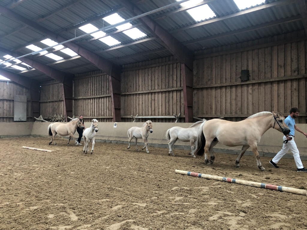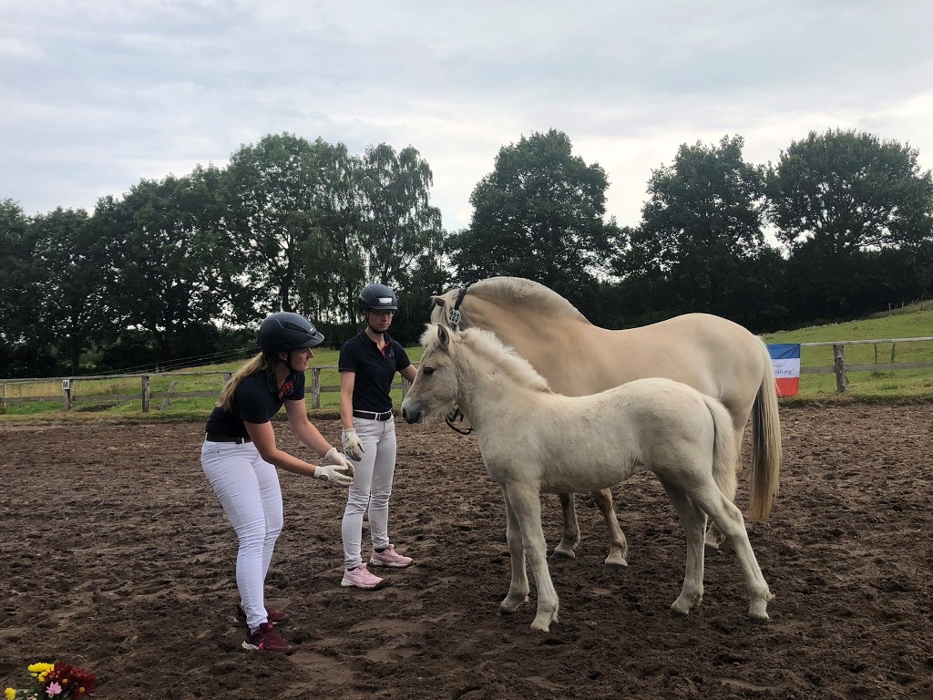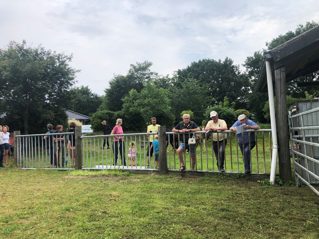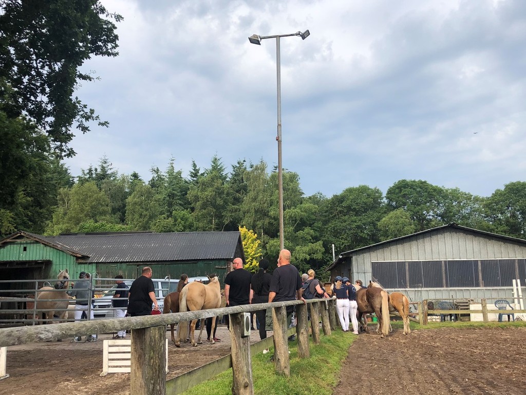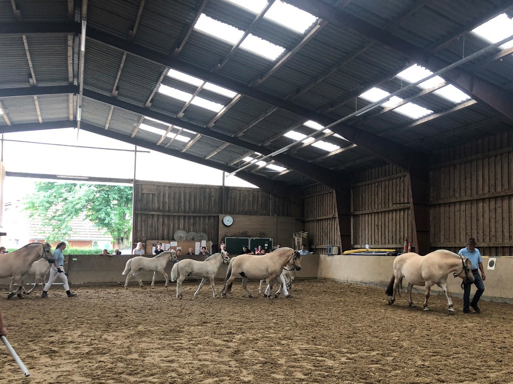 Der erste Platz am Morgen war - zum Glück bei angenehmen Temperaturen - das Fjordgestüt der Familie Hennig in Neu-Duvenstedt. Hier kamen neben einigen anderen Rassen eine ganze Reihe Fjordfohlen und sogar ein Steckenpferd zur Bewertung und Eintragung. Allerlei Prämien konnten vergeben werden. Während der anschließenden kurzen Frühstückspause fing es etwas an zu regnen.