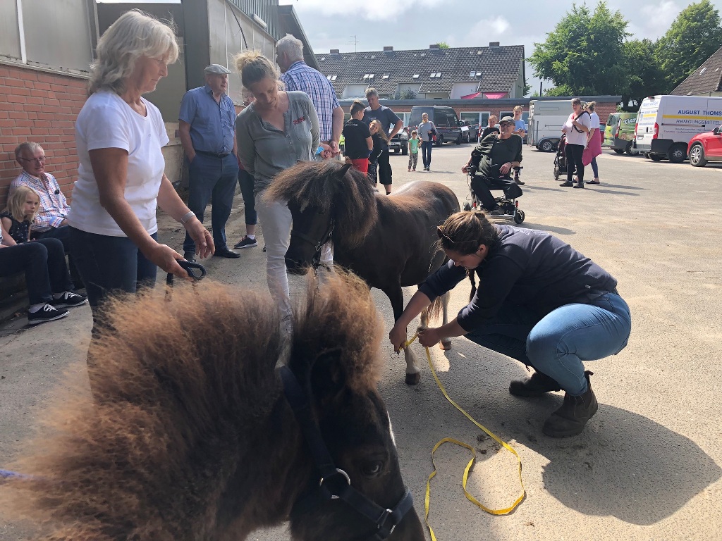 Letzer Termin des Tages das Gestüt Bumann in Gettorf. Viele Zuschauer hatten sich auf dem Hofplatz eingefunden. Neben zwei American Miniature Horse Fohlen wurden die diesjährigen Shetlandpony Fohlen aus der Zucht des Gestüts Holstein, wenige Welsh Cobs und Reitponys in der Halle präsentiert. Sehr wohlverdiente Prämien konnten an qualitätvolle Fohlen vergeben werden.