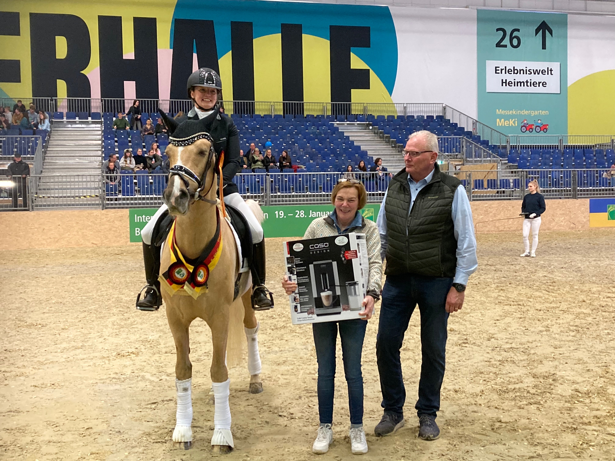 Cloud, New Forest aus der Zucht von Carsten Dose und im Besitz von Jannecke Hermer gewinnt den Freispring WB der älteren Hengste