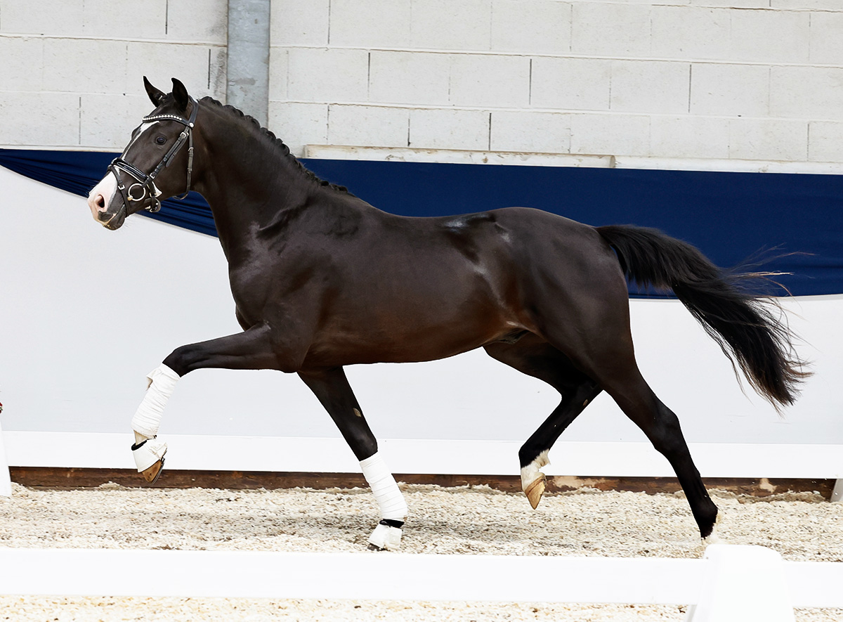 Die Kollektionsnummer 1 avancierte mit 14.500,00€ zur Preisspitze. Der zweijährige Rapphengst Naseweis, abstammend vom Siegerhengst Neverland WE - BünteeichenRicardo und gezogen von Marina Lemke aus dem niedersächsischen Neustadt, begeisterte mit seinem beeindruckenden Bewegungsablauf viele Kunden. Eine Dame aus dem Rheinland setzte sich im Bieterduell letztlich durch! Bei ihr wird der maskuline Youngster nun in Ruhe aufwachsen und auf seine Ausbildung als Dressurpony für die höheren Klassen vorbereitet werden.