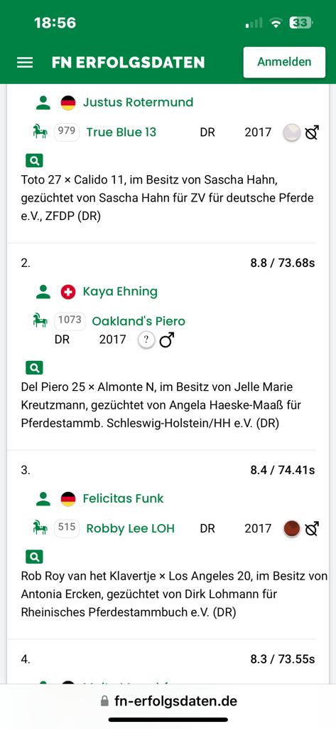 Hier einige Platzierungen für Schleswig-Holsteinisch gezogene Pferde am heutigen Tag. Wir wünschen viel Erfolg weiterhin!