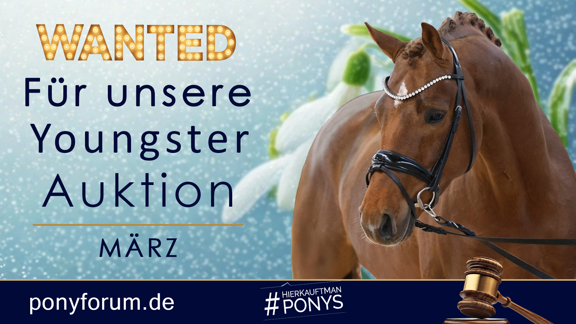 Für die nächste Online Youngster Auktion im März suchen wir rohe Reitponys der Jahrgänge 2021 und 2022 – ungerittene Reitponys in allen Größen sowie kleine Warmblüter mit dem Schwerpunkt Dressur bis zu einem Stockmaß von 1,62m.