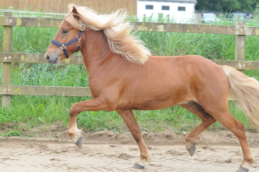 Auch wenn die Zuschauerzahl begrenzt war und alles unter Corona-Hygienebedingungen und kurzfristig stattfand wurden 16 Hengste und sechs Stuten angemeldet, von denen insgesamt 20 an den Start gingen. Bei trockenem, nicht zu heißem Wetter waren die Bedingungen bestens, um den Richtern Sarah Kuhls und Christian Rauer gute Leistungen zu zeigen. Als beste der sechs Stuten präsentierte sich die dreijährige Kæra von Heidmoor (v. Alvar frá Stóra-Hofi). Schon weit entwiclet und kräftig, mit 143 cm sehr groß und zudem bewegungsstark endete die Vorstellung mit der Endnote 8,04. Züchter und Besitzer ist Peter Belkowitz.