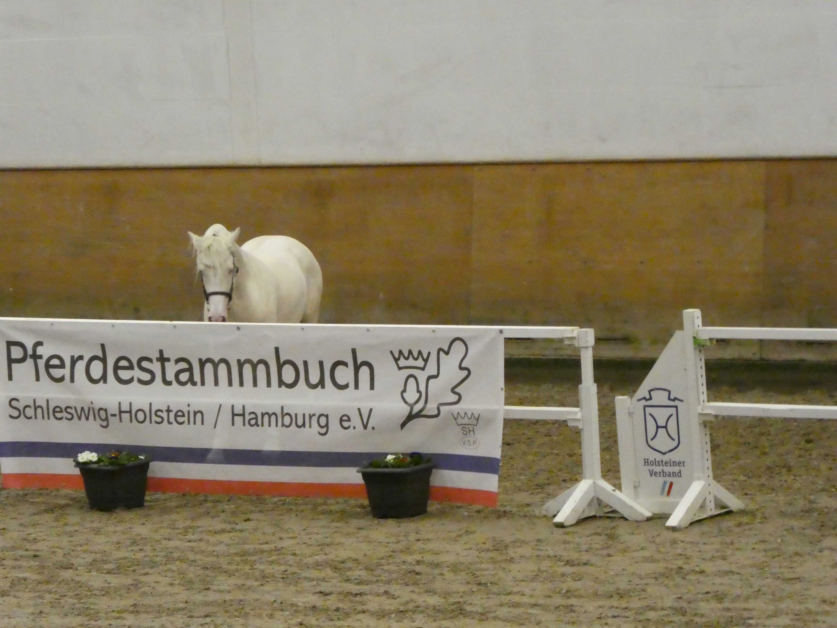 Die letzten Reitponyhengste dieses ersten Körungstages sind gerade fertig mit dem Freispringen und zurück in ihre Boxen.