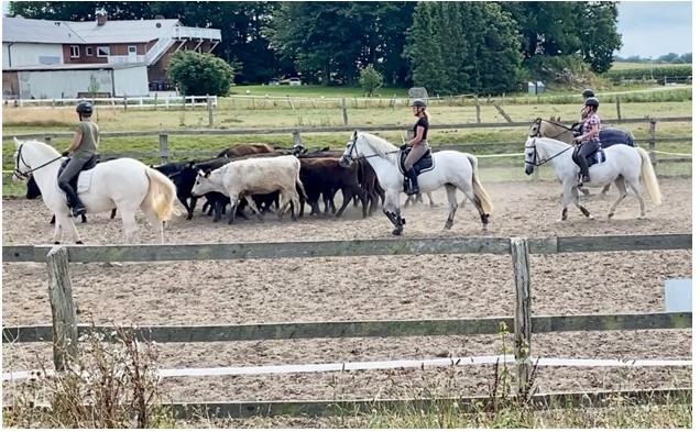Nachdem unser „Team Connemara“ ja schon gemeinsam im Geländepark Großenwiehe und erfolgreich bei einem Working Equitation Online Turnier unterwegs war, haben wir uns gemeinsam für einen Rinderkurs angemeldet.