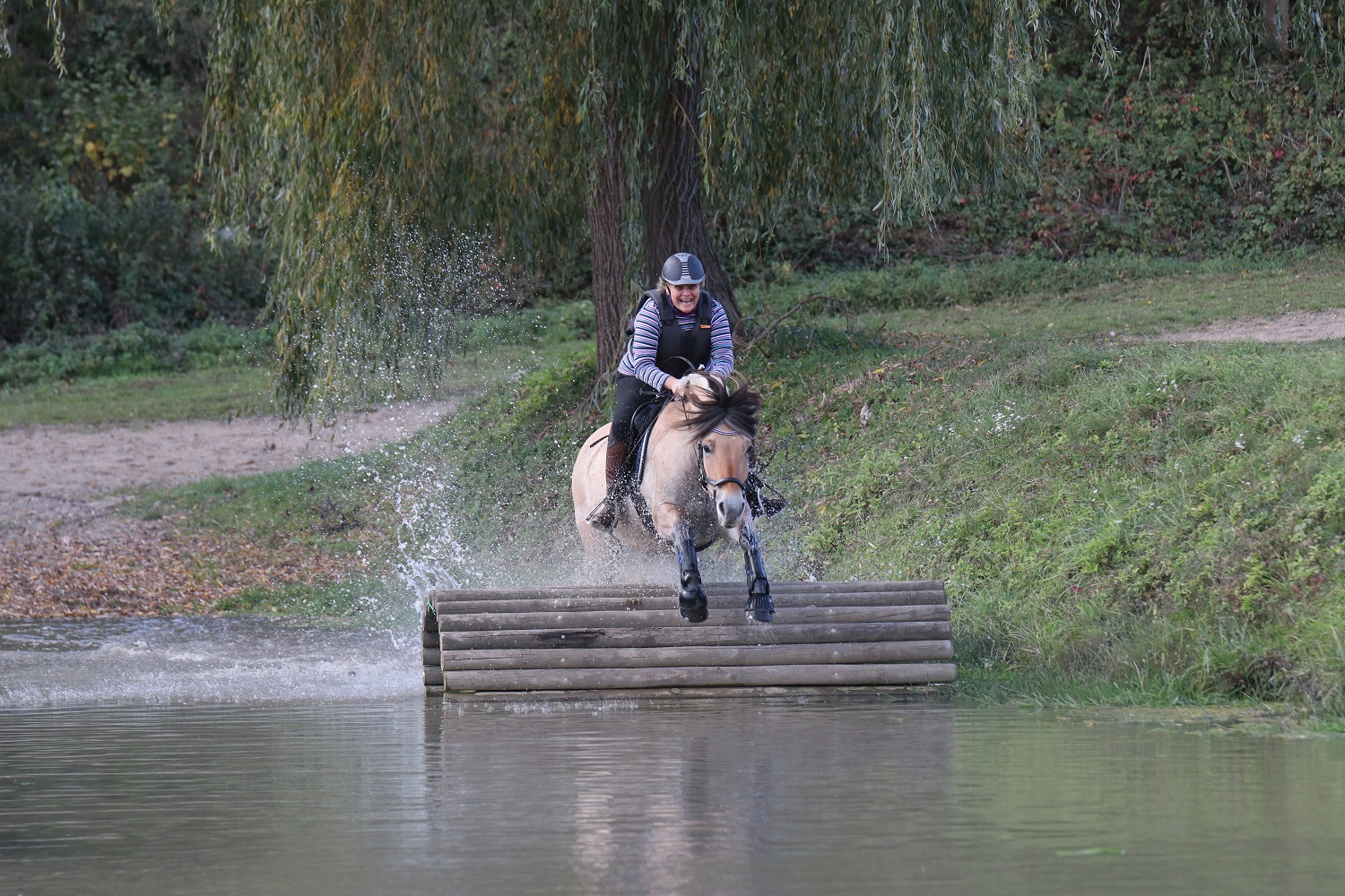 Dabei kamen jetzt erst die Prüfungsteile, die Jarle wirklich gut kann: Gruppengeländeritt und Geländespringen.