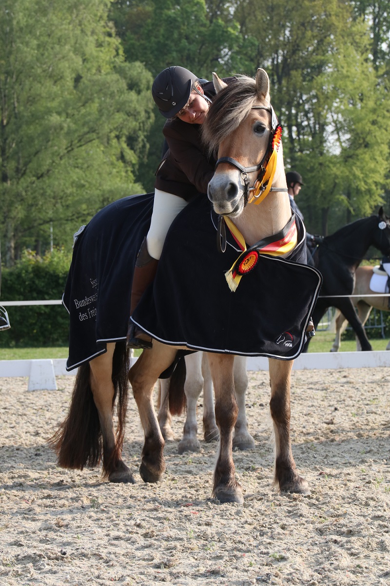 Erst auf der Rückfahrt - und nachdem meine in Tränen aufgelöste Mutter sich eingermaßen wieder beruhigt hatte - habe ich realisiert, dass wir tatsächlich "Bundeschampion der Freizeitpferde" sind und dass Jarle das erste Fjordpferd überhaupt ist, welches die offene Klasse gewinnen konnte!