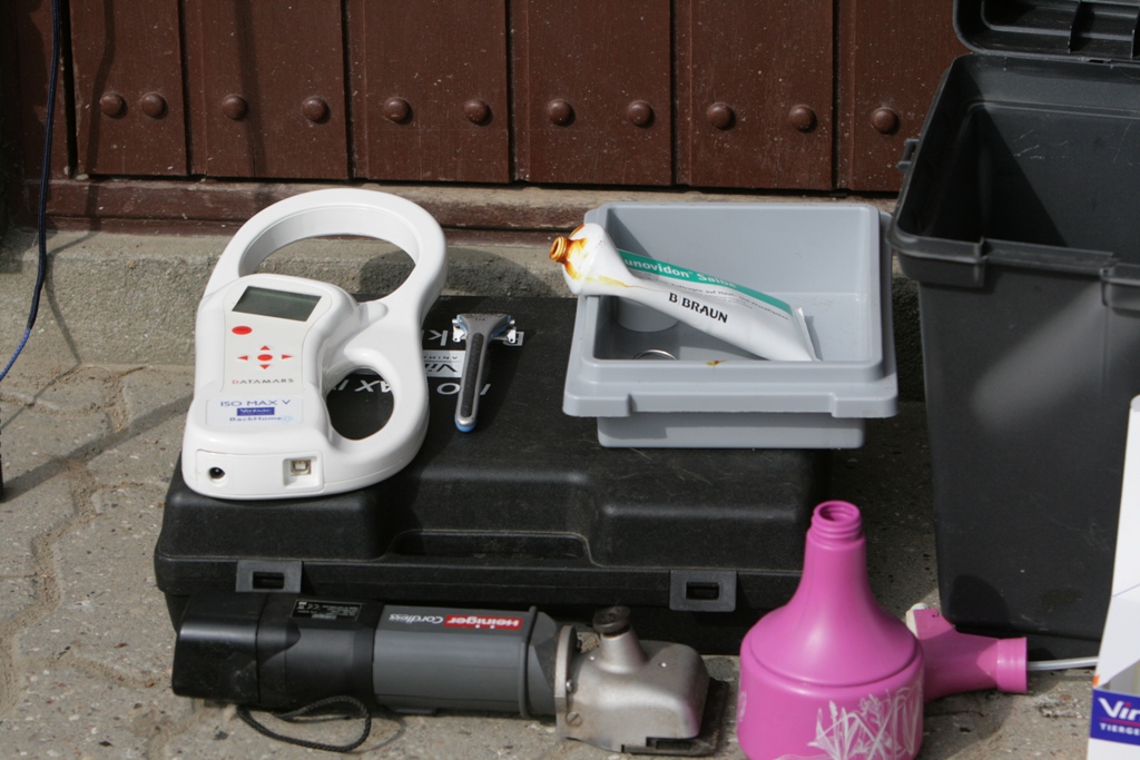 Fohlenfixieren, Chipstelle scheren, die Stelle mit Tupfer desinfizieren, Handschuhe an, den vorher ausgelesenen Transponder setzen, Salbe auf die Implantationsstelle und das Ganze noch mal mit dem Lesegerät kontrollieren. Fertig, Chip sitzt!
