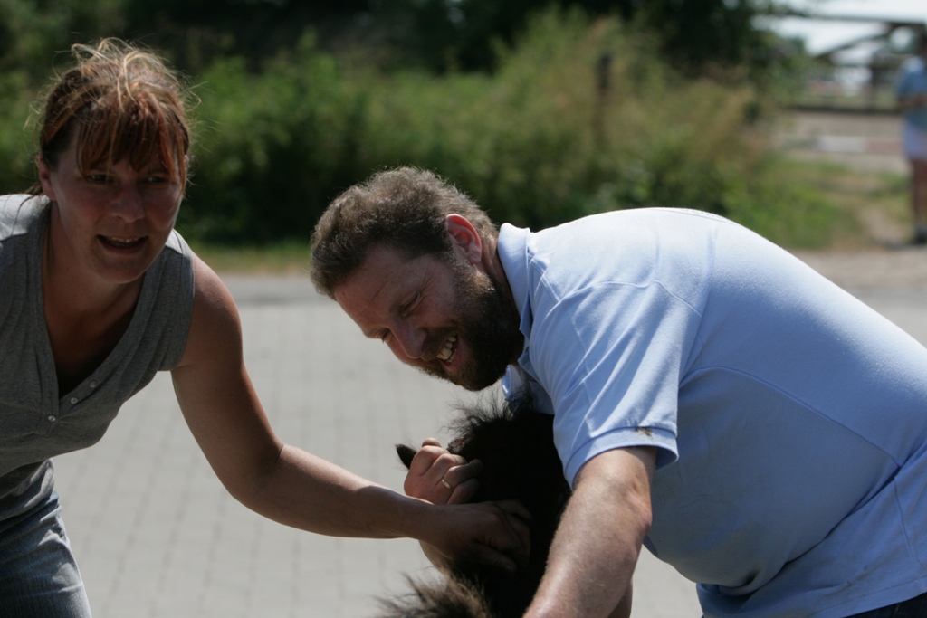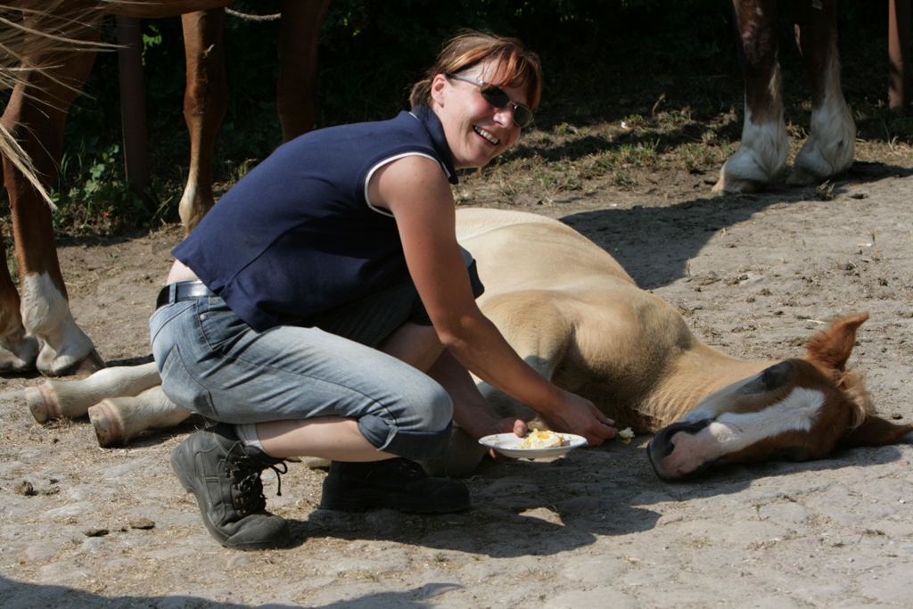 Irgendwas ist immer! Aber geht nicht, gibt’s nicht. Es ging tatsächlich (fast) immer, egal ob großes oder kleines Fohlen. Die Züchter wurden Meister im Einnehmen ganz erstaunlicher Körperhaltungen und Verrenkungen.