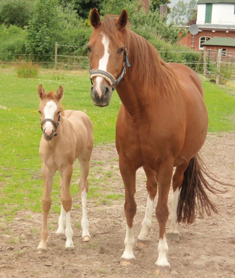 Wir bekamen das Erfolgspony Brooklands Moonwalker zum Reiten und wie der Zufall es soll, sahen wir in Heide seine Tochter Stratiatella beim Fohlenbrennen, in die wir uns sofort verguckten und sie eineinhalb jährig kauften.