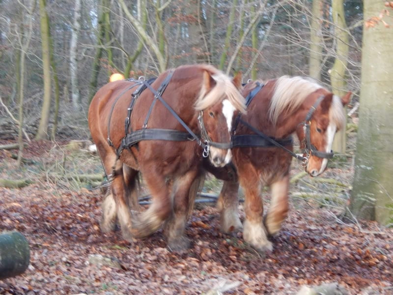 Unser Hauptaugenmerk liegt allerdings in der Waldarbeit. Ich bin nebenberuflich als Holzrücker mit meinen Pferden tätig.
