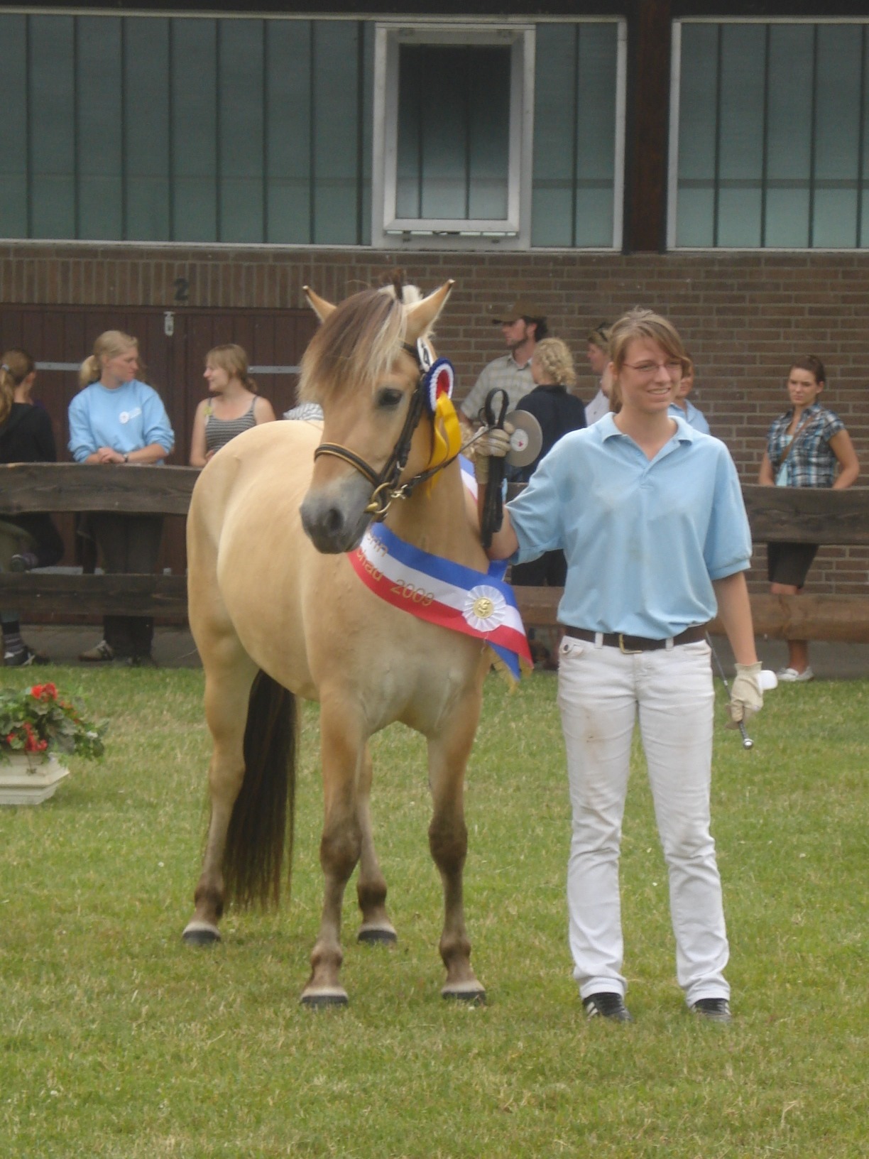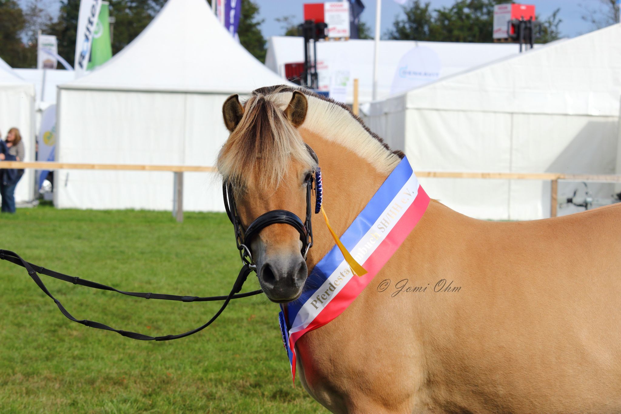 Glückselig führen wir nach Hause und freuten uns auf die kommende Elitestutenschau. Die Gruppe der Fjordstuten war sehr klein, vielleicht waren es vier Fjordstuten und wieder war es der Schrittring, der Herzklopfen verursachte. Runde um Runde führten wir die Gruppe an, langsam wuchs der Gedanke, dass wir tatsächlich gewonnen haben könnten – unsere erste Siegerin der Elitestutenschau in Padenstedt!