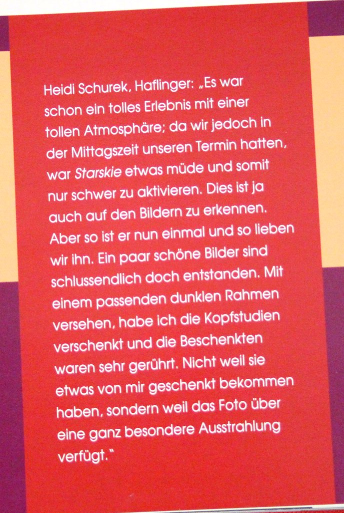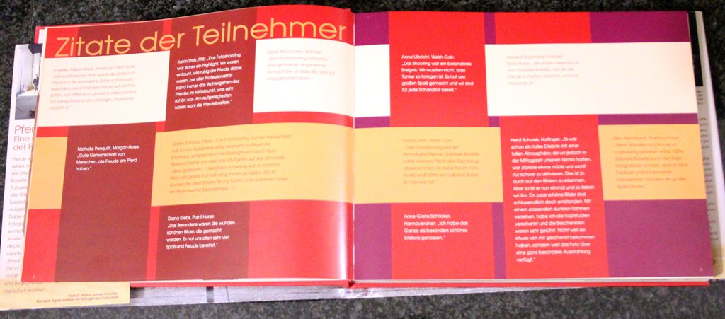 Das Bildband „Pferde im Fotostudio“ 3 Tage 77 Menschen 101 Pferde und Gabriele Boiselle haben wir selbstverständlich gekauft und erinnert uns immer wieder an dieses tolle Erlebnis.