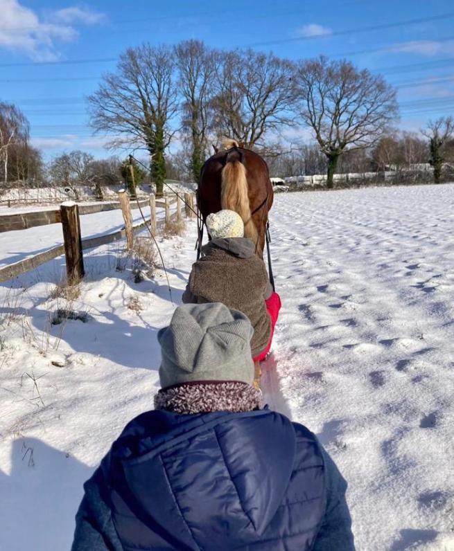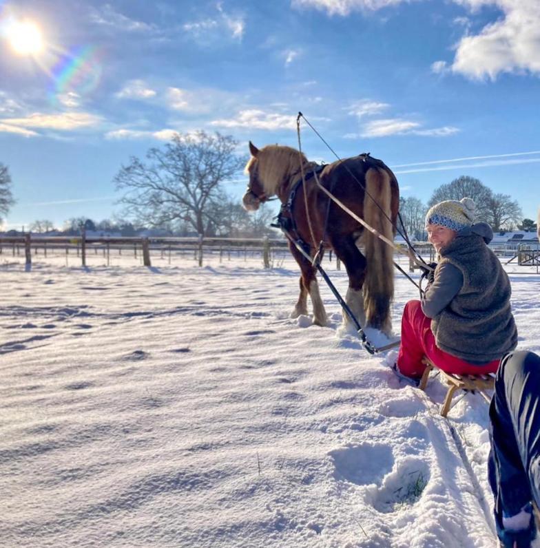 Der Obertitel: "Winterspaß mit Stonsdorfer, genannt Stoni, ein Süddeutsches Kaltblut"