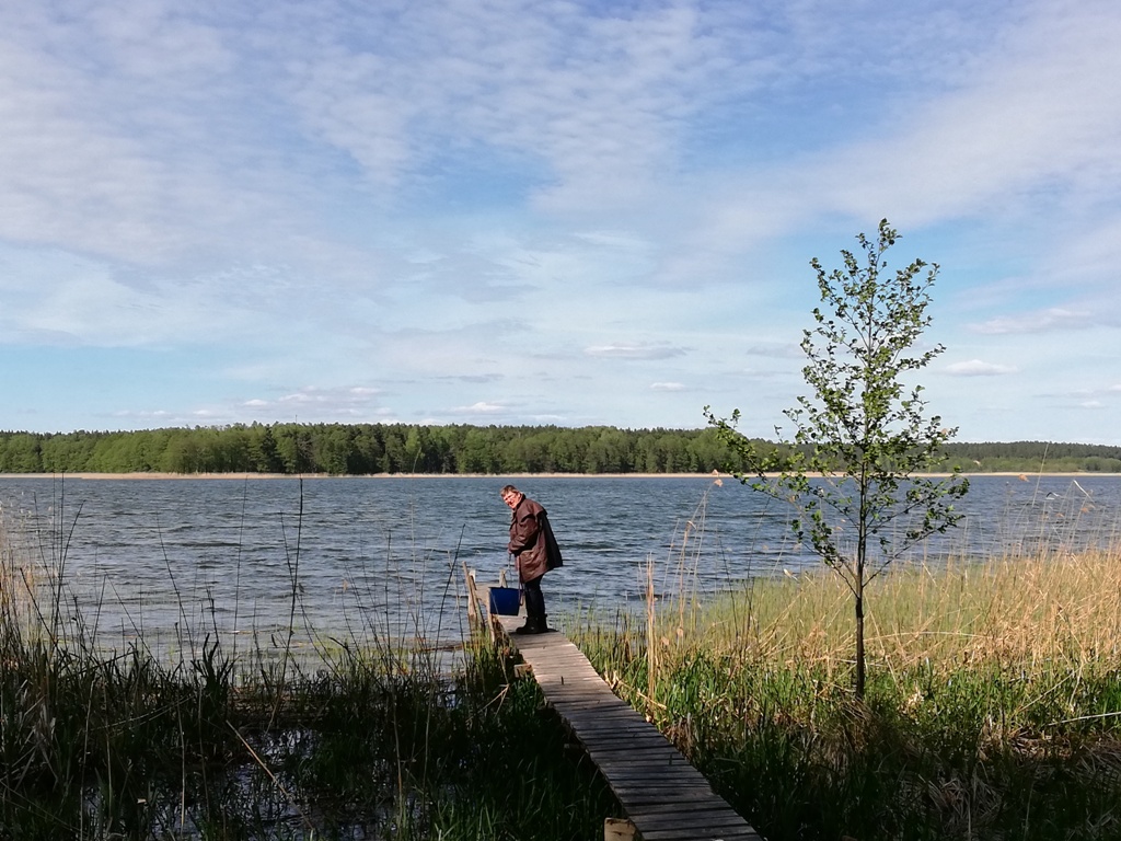 Heute Morgen sind wir von dem tollen Platz losgefahren: durch den Wald und durch den Wald und durch den Wald. Teilweise waren die Wege mit Kopfsteinpflaster. Dann hatten wir wieder eine tolle Stelle gefunden, direkt am See. Dort wurde Mittagspause gemacht und etwas geschlafen. Unsere neuen polnischen Freunde kamen mit Fahrrad zu Besuch.