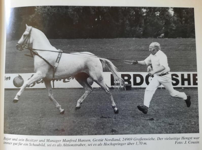 Dr. Ekkehard Frielinghaus sah ihn das erste Mal in den Springkonkurrenzen einer Araberschau in Dillenburg und war fasziniert, wie Bajar in hoher Fahrt, sicher taxierend, nie verweigernd, rationell springend atemberaubende Parcours absolvierte.