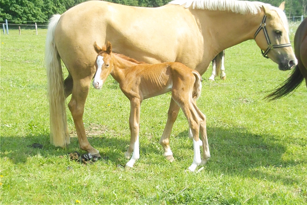 Sie entwickelte sich auch nicht ganz so gut, erhielt keine Fohlenprämie, da sie als Fohlen einfach etwas kraftlos und matt wirkte. Dennoch gefiel sie besonders unseren Papa, wir entschieden uns sie zu behalten und erst mal zu sehen wie sie sich entwickelt.