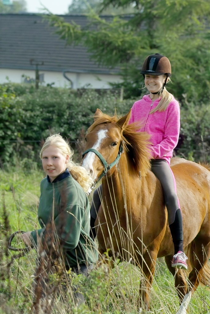 Also war der Plan sie erst mal weiter zu reiten und zu sehen wo die Reise hin geht, durch einen Zufall, kam Silke Thomsen (hatte damals schon die Jungpferdeausbildung von Petit Hamoyar mit übernommen auf uns zu, sie würde gerne ein Pony zur Verfügung nehmen für Ihre beiden Jungs Marvin und Lennard.
