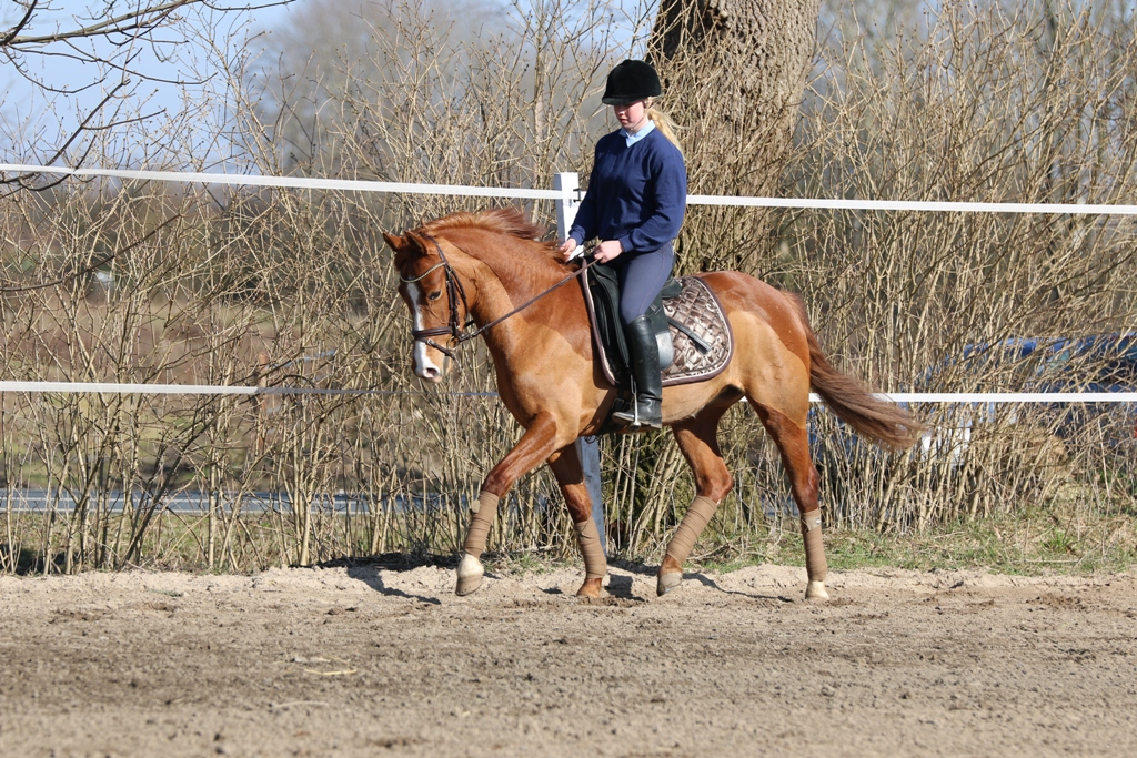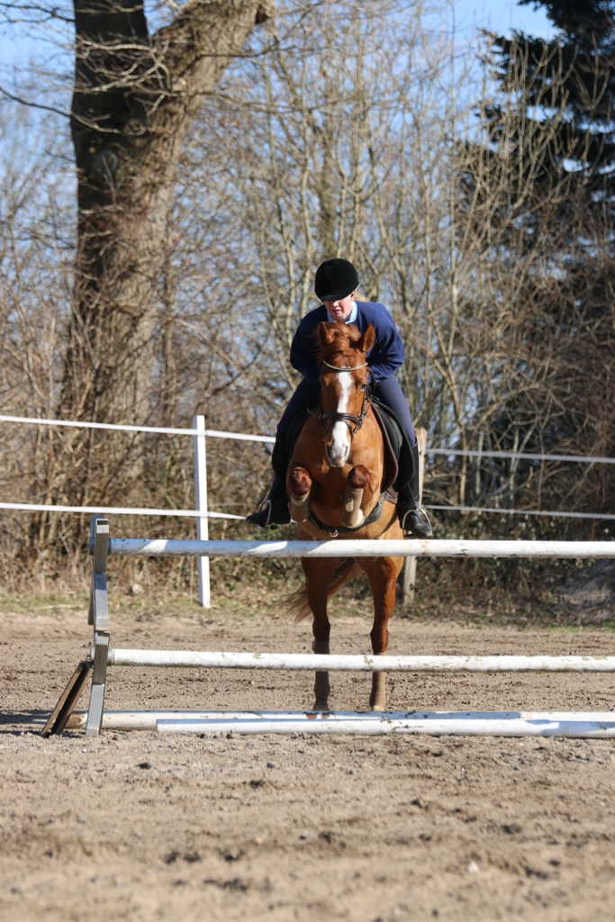 4 jährig haben wir sie dann wieder angeschoben, es war eigentlich ein Verkauf geplant und wir haben angefangen mit ihr zu springen, aber Papa wollte seine „Gurke“ (Der Spitzname ist Ihrer Kopfform geschuldet und nicht im Interesse von Steffi gewählt, hier heisst sie dann „Chanti“) nicht verkaufen, sie zeigte unter dem Sattel einen enormen Sprung, ging überall ran und rüber, guckte nicht ein einziges Mal oder hat probiert an der Seite vorbei zu gehen, da war klar die will springen.