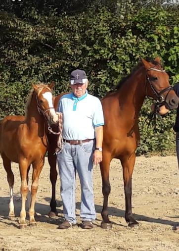 ein Palomino Hengstfohlen von Highway N entdeckt, ich konnte nicht vorbei fahren. Den musste ich haben .Ich habe geklingelt und somit habe ich ihn von näherem bestaunt und war verliebt. Als Absetzer kam er dann zu uns und somit auch die Liebe zu den Reitponys .Schnell kam die erste Zuchtstute dazu und auch die ersten Fohlen worden geboren. Claus warst mir immer ein toller "Berater", ein "Lehrherr", der mich zur Ponyzucht gebracht hat .Ich werde mich immer an seine Worte halten, denn die werde ich nie vergessen. Claus hat die Schleswig-Holsteinische Ponyzucht mit begründet , der Erfolg kam nicht von ungefähr. Er hatte den Blick, den nicht jeder hatte, um gute Ponys zu züchten .