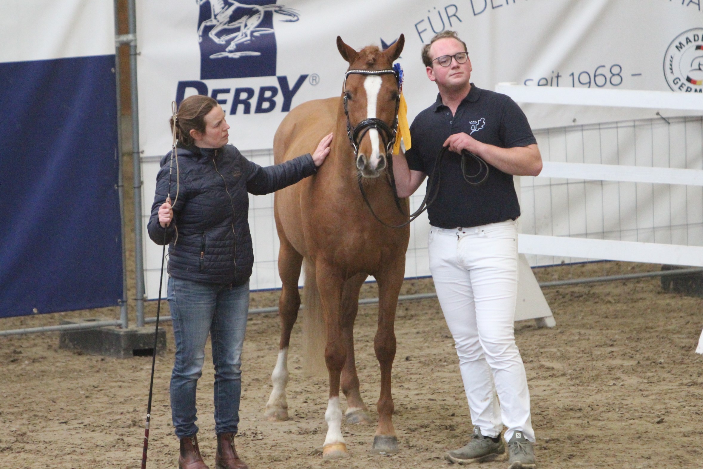 Herzlichen Glückwunsch an den Züchter Severin v. Rumohr, der bei diese Ansage - mit fast neutraler Mimik und fast ohne Emotionen auf der Tribüne sitzend - zuschaute.
