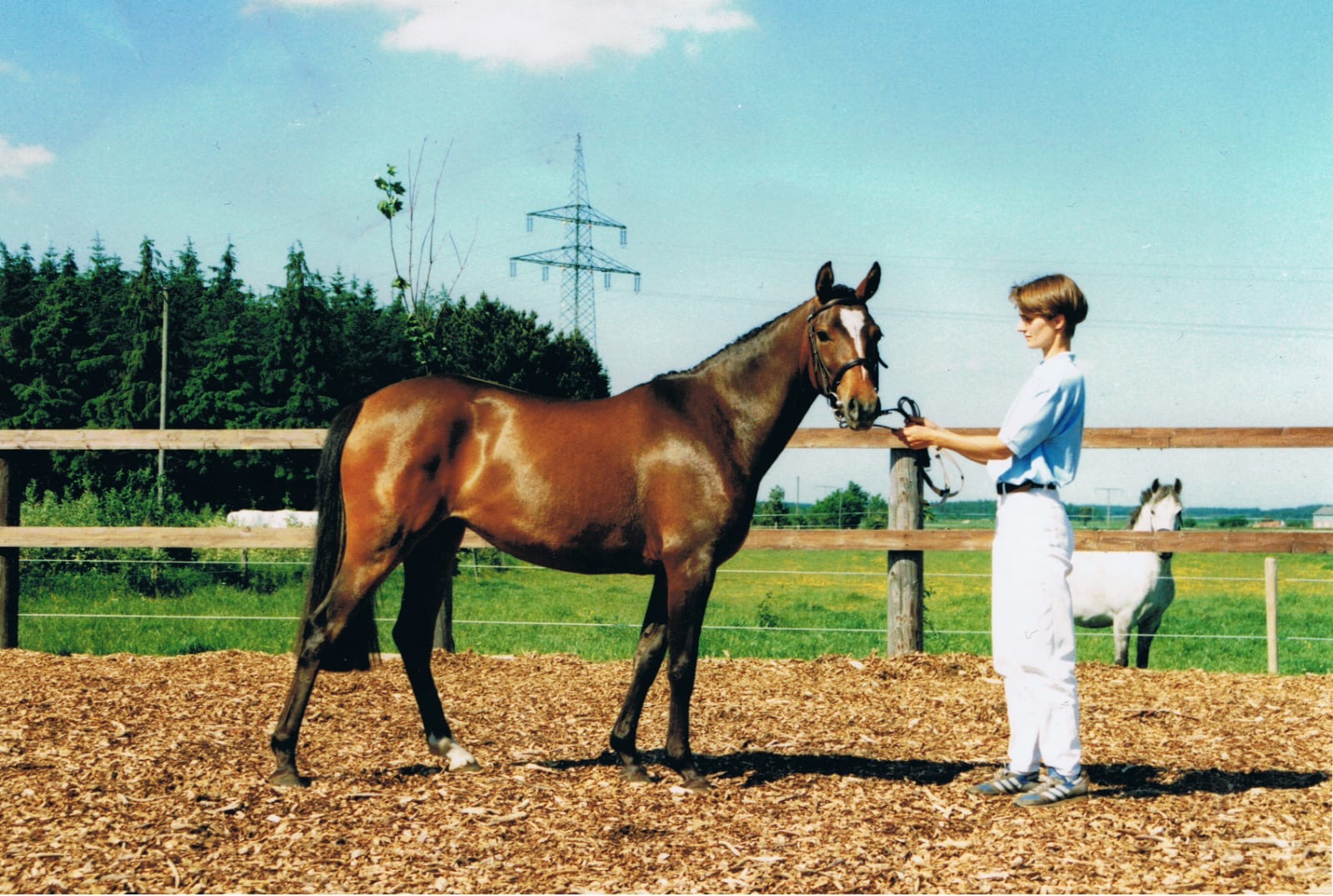 Shirly und ich haben in diesen 25 Jahren viel zusammen erlebt. Dreijährig habe ich sie angeritten, sie hat eine gute Leistungsprüfung gemacht, sie war auf der Eliteschau und ging eine zeitlang im Sport bis ich sie mit neun Jahren in die Zucht genommen habe. In dieser Zeit hat sie neun Fohlen das Leben geschenkt. Darunter sind zwei gekörte Hengste, eine Prämienstute, ein Vizebundeschampion und ein sehr gutes Vielseitigkeitspony. Aber was dieses Pony viel besser beschreibt, sind ihre typischen Eigenschaften. Kein Fremder könnte Shirly einfach von der Koppel holen ohne ein langes Katz-und-Maus-Spiel. Sie macht die gewaltigsten Bocksprünge und abenteuerlichsten Verrenkungen in der Luft, aber unter dem Sattel war sie immer super brav. Shirly war beim Reiten sehr ehrgeizig, sehr lernwillig und sehr leistungsbereit.