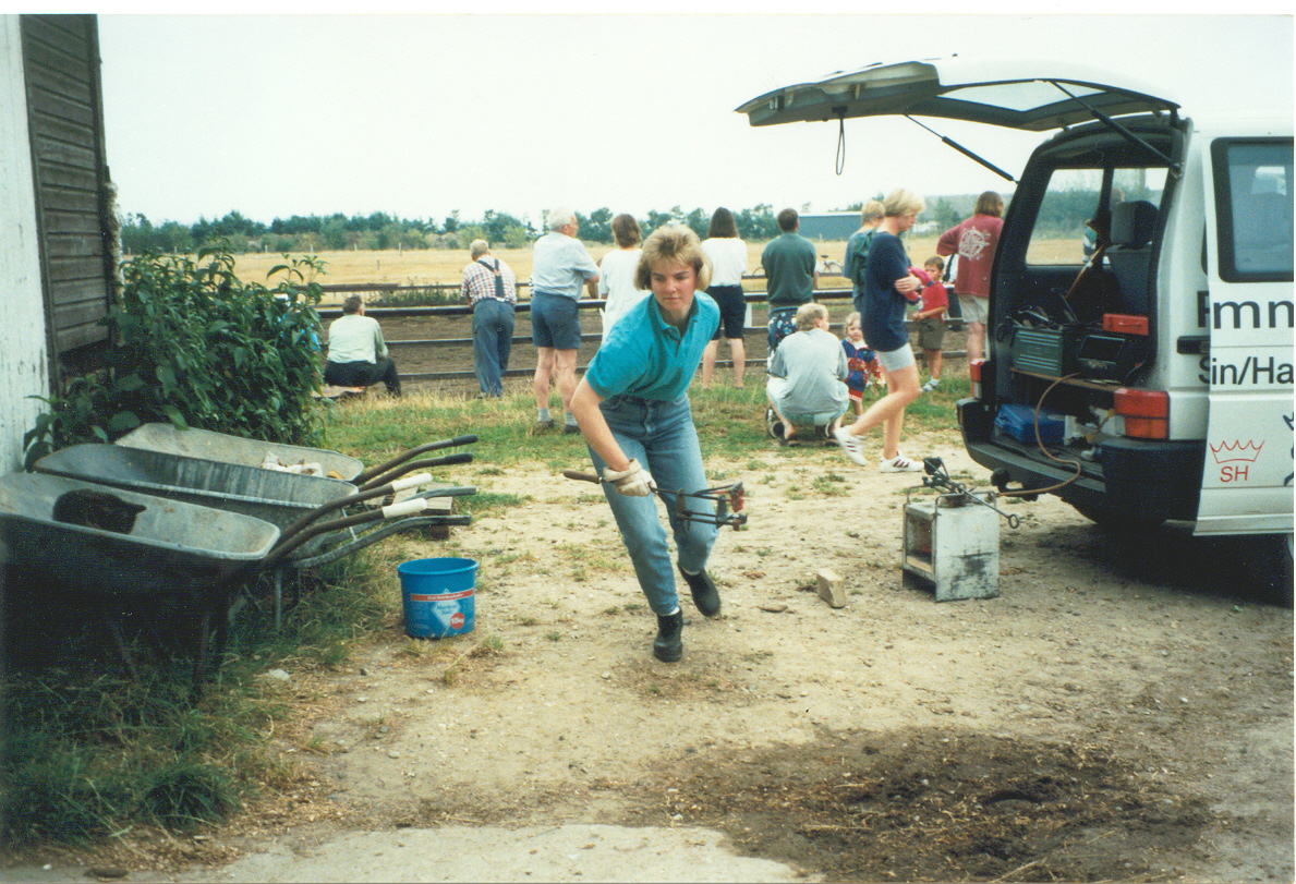 In den frühen Morgenstunden ging es mit allem notwendigen (Brennofen, Brenneisen, Schermaschine, Schreibkram…) gut verstaut das erste Mal mit unserem damaligen Verbandbus auf nach Dagebüll zum Fähranleger und auf die Fähre nach Föhr.
