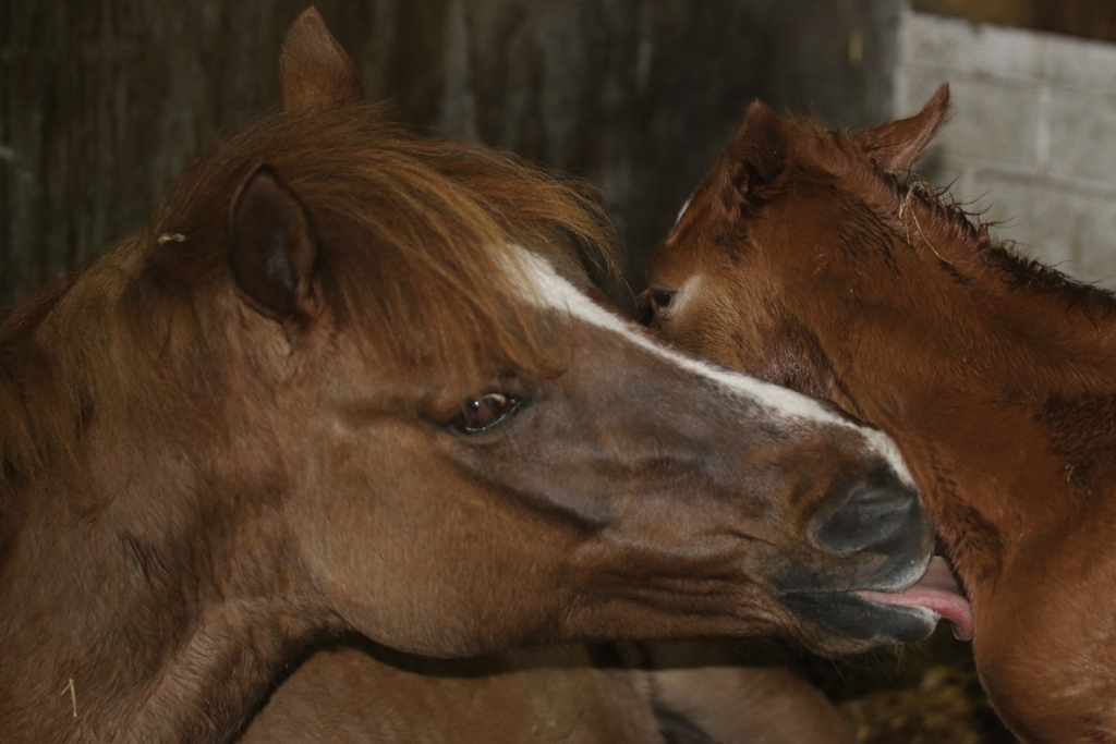 Bis auf wenige Ausnahmen haben unsere Stuten ihre Fohlen ganz alleine auf die Welt gebracht und brauchten keine Unterstützung, wir beobachten sie dabei und lassen sie in Ruhe, aber wir sind da, sollte es doch mal komplizierter werden.