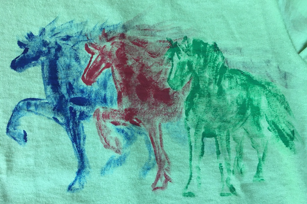 Wir sind seit den 70iger Jahren mit dem Islandpferde Virus schwer und unheilbar infiziert. Also finden sich überall Gegenstände wie Tassen, Skulpturen, unendlich viele Bilder, gefilzte Sitzkissen, bemalte T Shirts usw…. usw. Und es kommt immer mehr dazu. Ja, es gab sogar im letzten Jahr zu Ostern einen Kuchen mit eingearbeitetem Islandpferd. Keine Ahnung, wie das da reingekommen ist. Lecker war es aber!