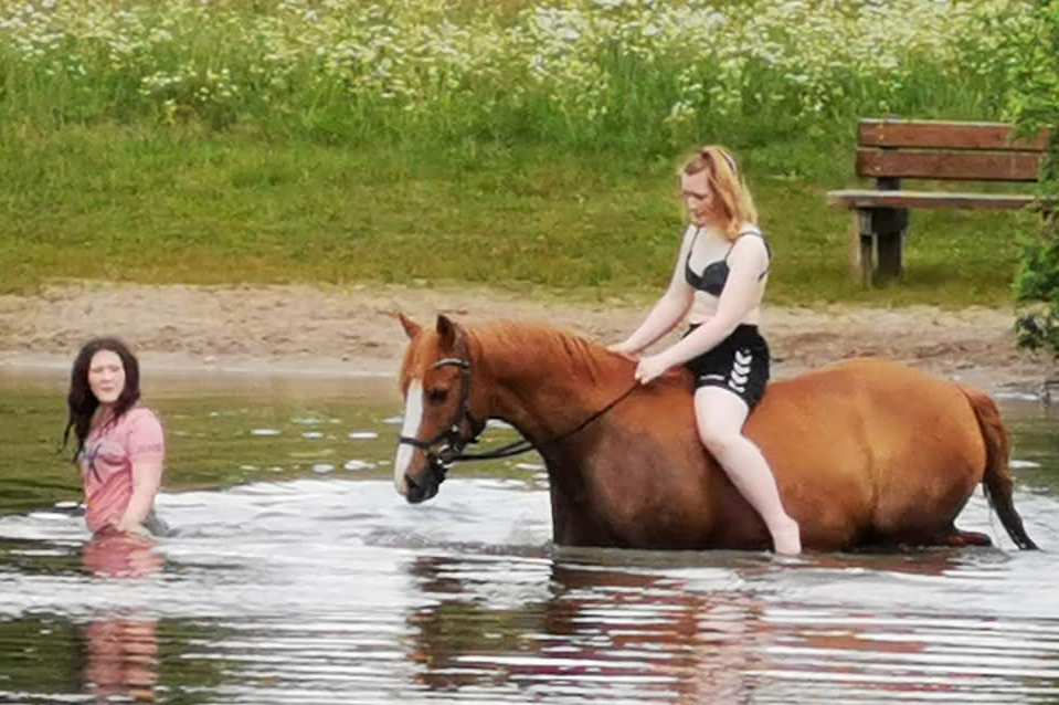 Na, als ich damals selber noch jung war, habe ich Warmblüter bei einem Züchter geritten. Die Rasse spielt, finde ich, dabei keine Rolle. Und was soll ich sagen, niemals, aber auch wirklich niemals, wäre damals so einer mit mir bereitwillig, ohne es vorher zu kennen in einen See gestiefelt, so wie es heute Casino mit Sarah und Josy getan hat.
