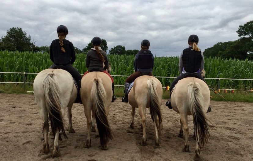 Noch heute hat Fenja Freude daran, Kinder um sich zu haben, läuft im Unterricht mit den Kleinen und liebt es, im Gelände immer noch mal Gas zu geben. Da werden unsere Jungstuten auch noch mal abgehängt!